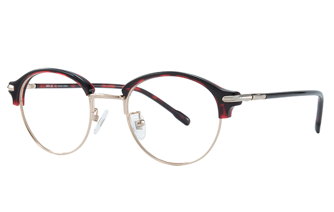 Give your look a warm touch with soft neutrals. These browline glasses feature a gloss brow over a metal frame. The nose bridge features fine filigree detail. Acetate temple tips and adjustable nose pads provide all-day comfort.