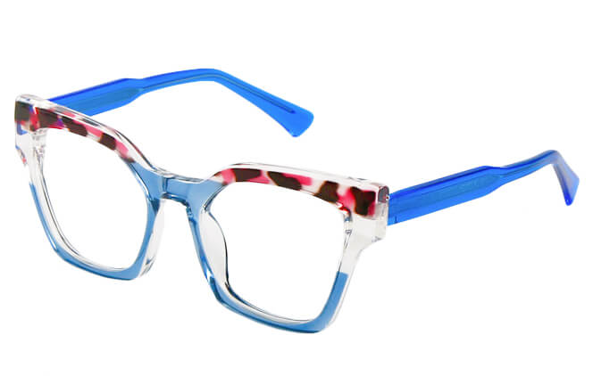 “Made with premium materials, these glasses are durable and wear-resisting. The frame will leave you a deep impression at first sight. Designed with exquisite metal hinges, this chic pair of eyeglasses is extremely versatile and comfortable. It comes in three colors: blue, cameo brown, red. “