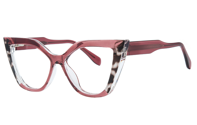 These acetate frames exude bold confidence in a dramatic cat-eye silhouette. The medium size design features a deep black and burgundy finish that makes a striking statement while maintaining versatility for everyday wear. The spring hinges make it comfortable to wear.