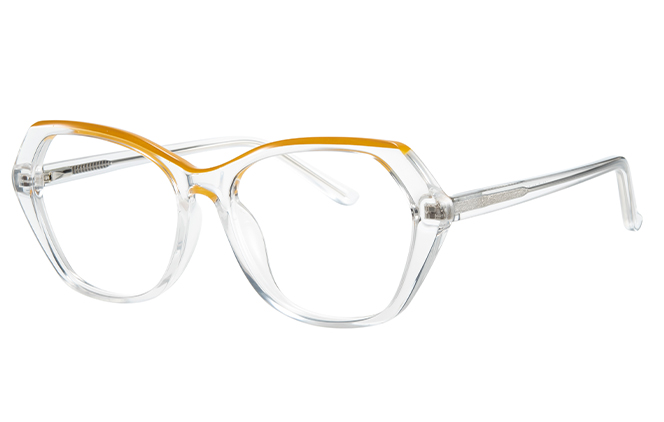 It is a pair of cateye full rim eyeglasses featuring a black or clear finish in acetate, offering long-lasting shape retention and a hypoallergenic surface. The Spring hinges make it comfortable to wear.