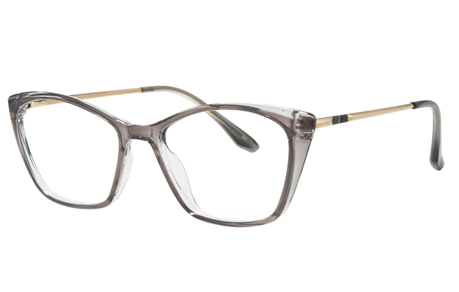 Discover a blend of sophistication and elegance with this full rim cat eye frame, crafted from mixed materials, showcasing impeccable design and timeless aesthetic allure. These glasses offer exceptional comfort with spring hinges and a universal bridge fit, ensuring a snug and relaxed fit for all-day wear. It comes in two colors: black and grey.